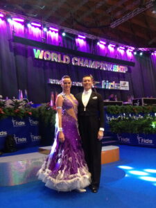 Am Sonntag nach der EM Latin wurde die WM der Sen III in der gleichen, schön hergerichteten Halle wie die EM vom Samstag durchgeführt. Da die WM der Senioren auch schon in Seminarräumen von Hotels oder Sporthallen stattfand, war diese Umgebung ganz speziell angenehm. Die Anzahl Zuschauer schwand allerdings je länger das Turnier dauerte. Aber die Frage ist, wer sich an einem Sonntagabend nach einer langen Tanzwoche um 23:00 Uhr noch einen (Sen III-) Final anschaut. Schade für die Finalisten, es wäre schön gewesen mit etwas mehr spectatori….